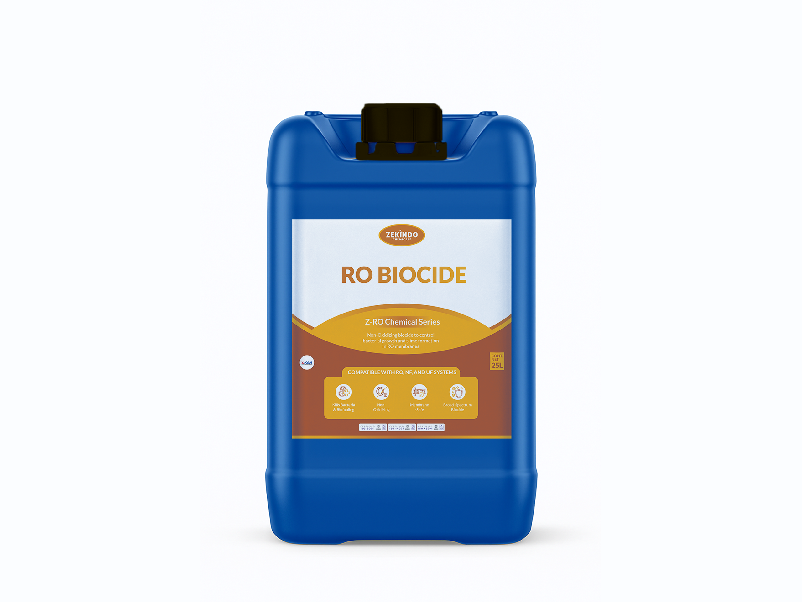 Bacteria in raw water entering RO membranes can multiply and form slime biofouling, gradually reducing permeate production and overall RO performance. ZEKINDO RO Biocide eliminates bacteria in your RO feedwater before it reaches the membranes, protecting system efficiency.